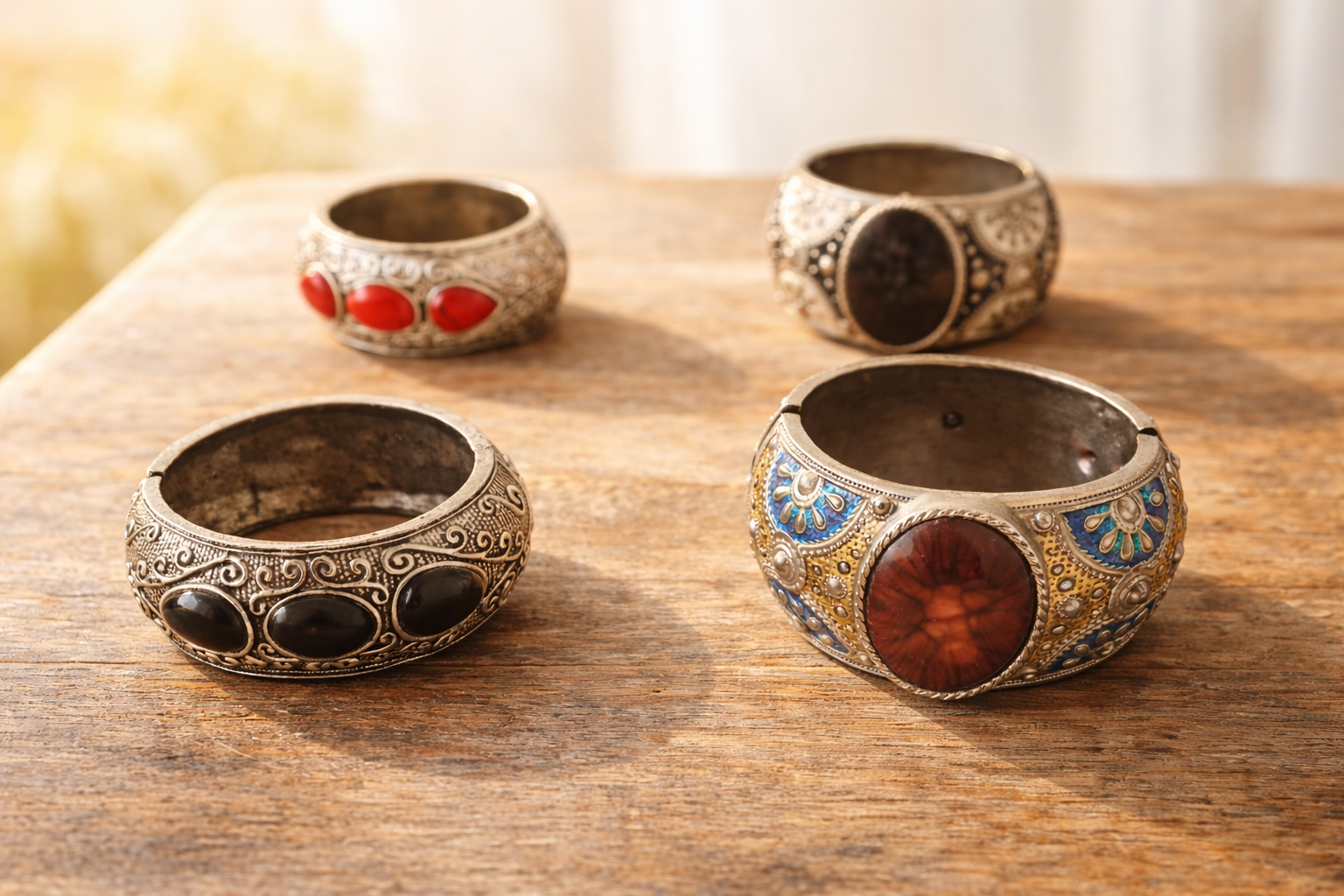 Ces 4 bracelets uniques ont été chinés avec soin chez des antiquaires.