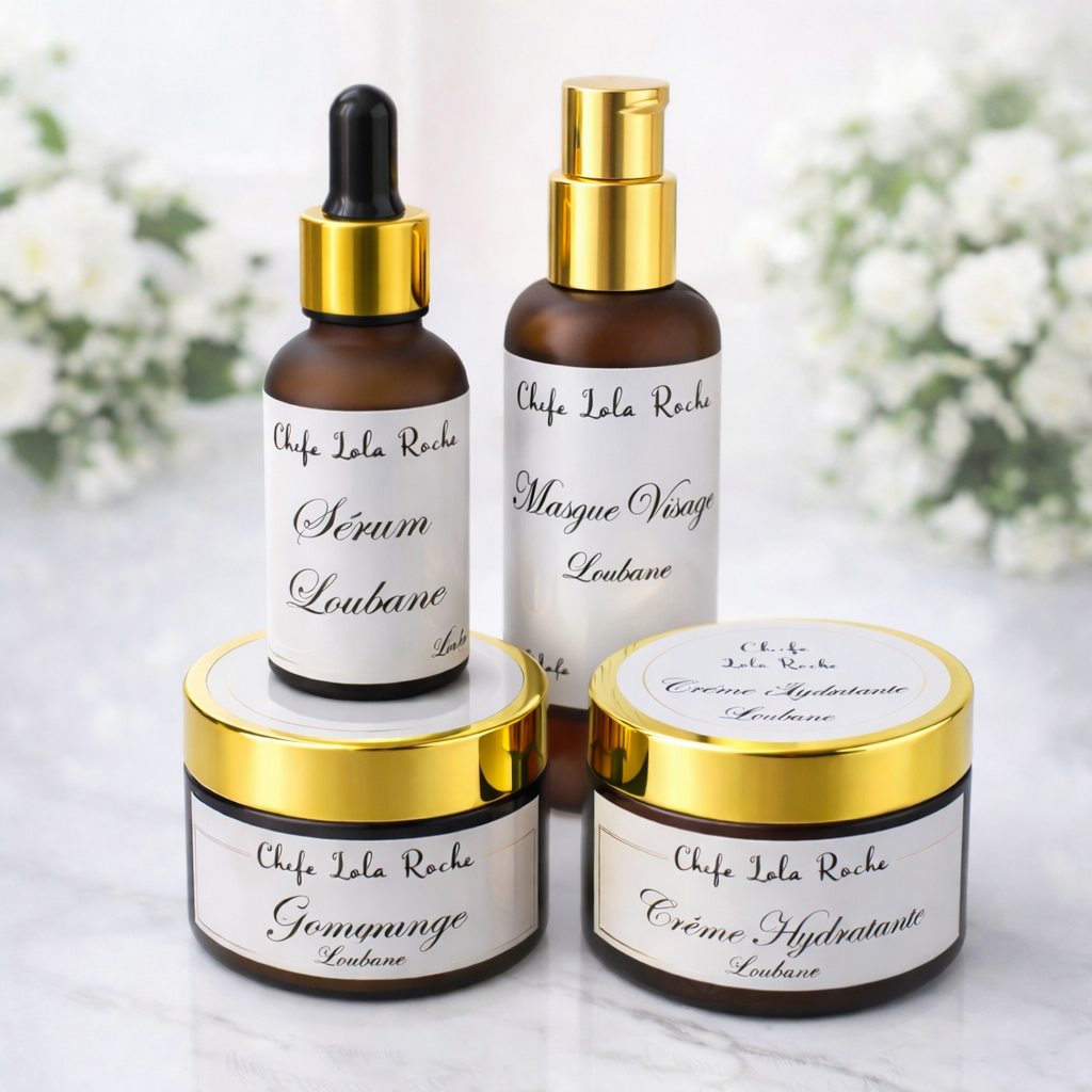 Crème visage, gommage, serum et masque.